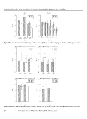 Figure 2. Estimates of adult mortality with bootstrap confidence intervals (95%), by sex and according to place of residence (EMUIB orphanhood data).