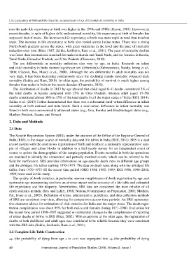 death statistics in India (Roy and Lahiri, 1988; National Commission on Population, 2001; Mathers,