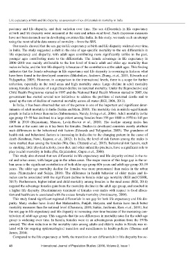 males in India, and the low life disparity is because of the contribution at the adult ages. This finding
