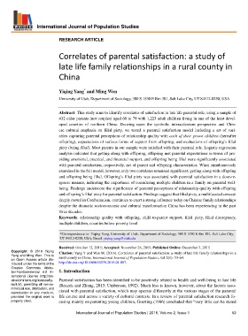 Copyright: © 2016 Yiqing Citation: Yang Y and Wen M. (2016). Correlates of parental satisfaction: a study of late life family relationships in a