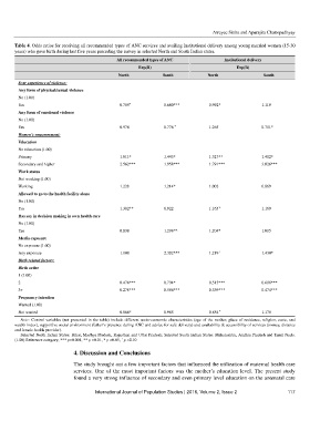 Table 4. Odds ratios for receiving all recommended types of ANC services and availing institutional delivery among young married women (15-30