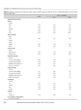 Table S1. Parameter estimates for the three-level (child, mother, and PSU) regression model for the use of institutional delivery of recent births,