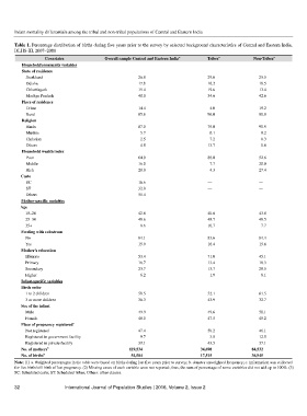 Table 1. Percentage distribution of births during five years prior to the survey by selected background characteristics of Central and Eastern India,