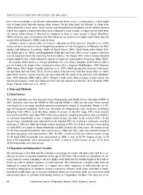 dary, 1999; Ramesh, 2006; Sahoo, 2011). Women’s work status, their exposure to mass media, and