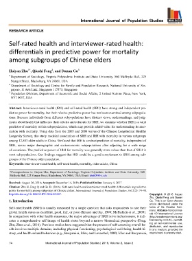 Citation: Zhu H, Feng Q and Gu D. (2016). Self-rated health and interviewer-rated health: differentials in predictive