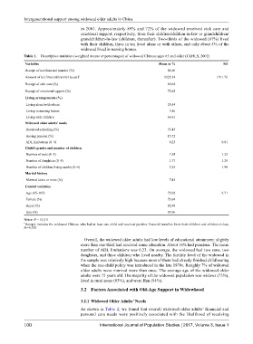 Table 1. Descriptive statistics (weighted means or percentages) of widowed Chinese ages 65 and older (CLHLS, 2002)
