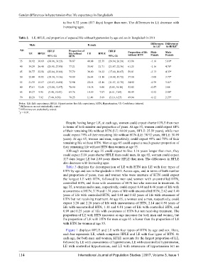 Table 2. LE, HFLE, and proportion of expected life without hypertension by age and sex in Bangladesh in 2011