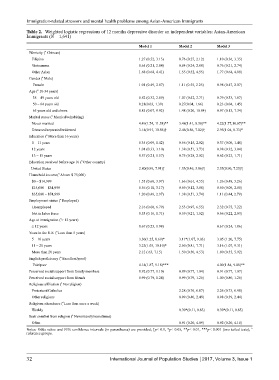 Table 2. Weighted logistic regressions of 12 months depressive disorder on independent variables: Asian-American