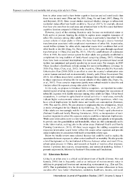residential status affect later health conditions. Xu et al. (2017), for example, showed