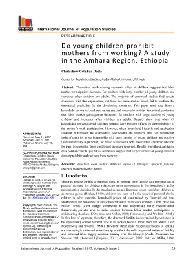 150400 Addis Ababa, Ethiopia; Keywords: maternal work status; Amhara region of Ethiopia; lifecycle fertility;