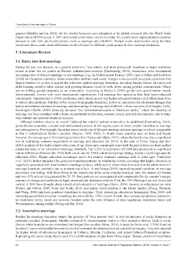 marriage transition, probably due to modernizing effects. Ji and Yeung (2014) reported regional variations in marriage