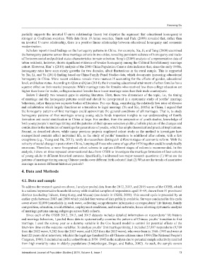 analysis, I drew on three repeated cross-sectional data from CGSS to investigate the marriage formation of four cohorts