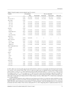 Regarding father’s education, about 80% of rural respondents’ fathers only attended primary school or less, a rate 25%