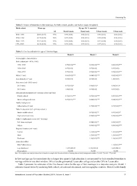 Table 2. Tempo of transition to first marriage, by birth cohort, gender, and hukou origin (weighted).