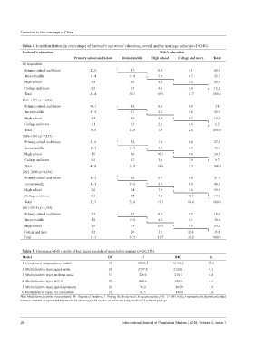 Table 4. Joint distribution (in percentage) of husband’s and wives’ education, overall and by marriage cohort (n=19,340).