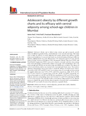 Mumbai. International Journal of Keywords: adolescent obesity; central adiposity; growth chart; India; Mumbai;