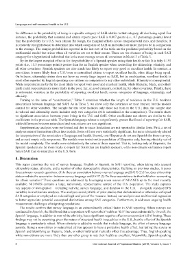 coefficients in the previous table. The Spanish language relates to a significantly greater likelihood of reporting fair SAH,
