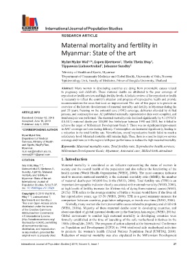 and Sports, NayPyiTaw, Keywords: Maternal mortality ratio; Total fertility rate; Reproductive health services;