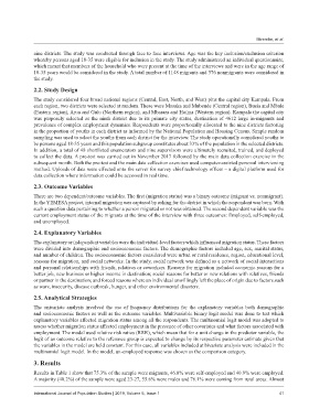 The explanatory or independent variables were the individual-level factors which influenced migration status. These factors