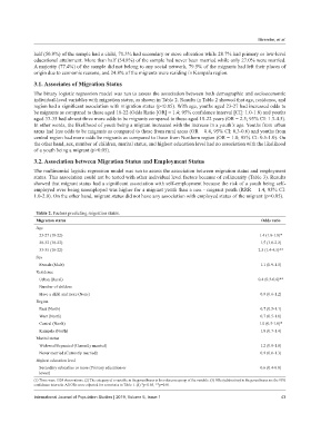 1.0-2.0). On the other hand, migrant status did not have any association with employed status of the migrant (p>0.05).