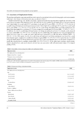 self-employment status of the migrant (p<0.05). Whereby, the risk of a youth being self-employed over being unemployed