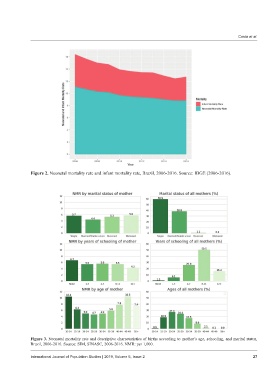 Figure 3. Neonatal mortality rate and descriptive characteristics of births according to mother’s age, schooling, and marital status,