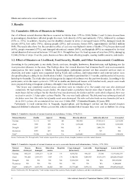 3.2. Effect of Disasters on Livelihood, Food Security, Health, and Other Socioeconomic Conditions