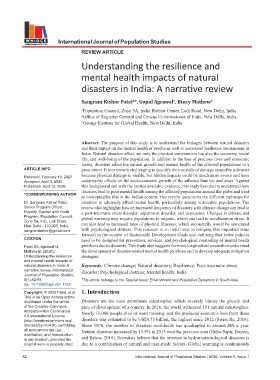 natural disasters in India: A Keywords: Climate change; Natural disasters; Resilience; Post-traumatic stress