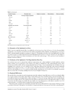 Table 2, summarizing the cumulative incidence by August 15. The incidence in Africa was even significantly lower than