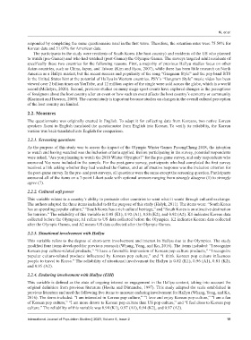 This variable refers to the degree of short-term involvement and interest in Hallyu due to the Olympics. The study