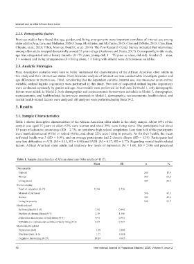 factors, African American older adults had relatively low levels of depression (M = 1.68, SD = 2.00) and perceived