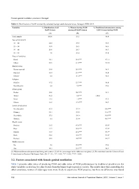 Table 1. Distribution of 8,649 women by selected background characteristics, Senegal, DHS 2019.