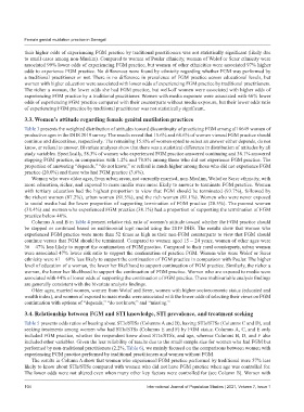 study variables. Specifically, 58.3% of women who experienced FGM practice answered continuing and 38.1% answered