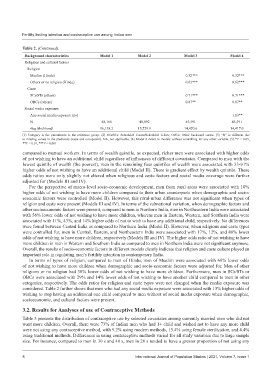 odds of not wishing to have more children, respectively (Models III and IV). The higher odds ratio of not wishing to have