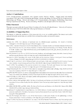 Fernandes SG, Rodrigues AM, Nunes C, et al. (2018). Food insecurity in older adults: Results from the epidemiology of chronic