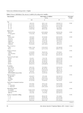 Table 2. Percent distribution of the outcome variable by the independent variables