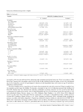 her population policy target for fertility. For instance, attainment of any level of education increased the likelihood of