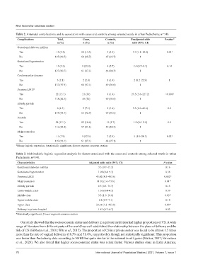 Table 2. Antenatal complications and its association with cases and controls among selected wards in urban Puducherry, n=140.