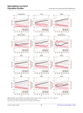Figure 1B. Males’ LEAB and gender gap in LEAB in South and East European countries, 1990 – 2019, continued