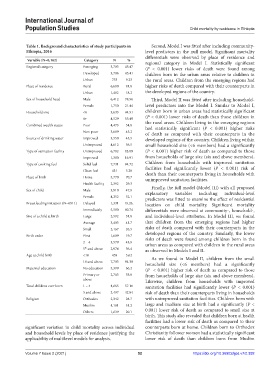 Household size <6 3,633 44.51 children born in urban areas had statistically significant
