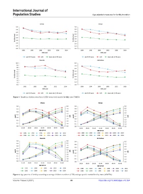 Figure 4. Age patterns of fertility according to average children even born (CEB) and age-specific marital fertility rates (ASMFRs)