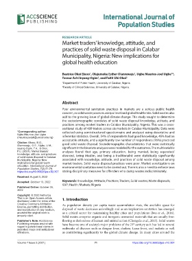 Accepted: October 13, 2022 Keywords: Knowledge; Attitude; Practices; Traders; Solid wastes; Waste disposals;