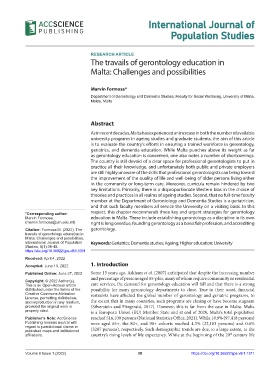 International Journal of Population Keywords: Geriatrics; Dementia studies; Ageing; Higher education; University