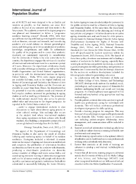 in particular with the International Institute on Ageing, following items related to gerontology education: