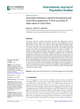 International Journal of Population Keywords: Cognitive functioning; Decline; Time-use; Active life engagement; Successful aging