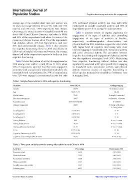 Table 2. Time spent on daily activities among older adults in rural China in 2018