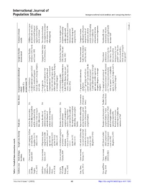 Table 1. Detailed data extraction result. Study design; location; year Cross-sectional; of older adults Brazil; 2015 • daughters (n=74) others (n=26) Cross-sectional; Spain; 2010 age and over) • offspring (n=125) spouse (n=64) others (n=19) Cross-sectional; of persons with Canada; 2009 dementia (n=17) spouse (n=35) others (n=3) Cross-sectional; Taiwan; NA 65 years old • sons (n=198) Cross-sectional; (Liu and Bern- China; 200