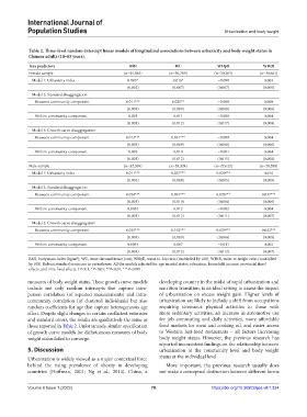 Table 2. Three‑level random‑intercept linear models of longitudinal associations between urbanicity and body weight status in
