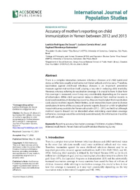 Journal of Population Studies, Keywords: Reporting accuracy; Vaccination coverage; Child immunization; Children;