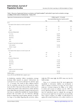 Table 1. Measures of agreement between vaccination card (“gold standard”) and mother’s report and vaccination coverage